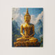 Transport yourself to the serene, spiritual heart of Southeast Asia with this breathtaking image of a Golden Buddha enthroned high above a lush, misty landscape.