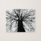 Fotografía en blanco y negro de la silueta de un viejo árbol con muchas ramas.