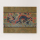 Dé rienda suelta al majestuoso poder y al rico simbolismo de este exquisito diseño antiguo de dragones chinos. Esta intrincada obra de arte presenta un estilizado dragón, un poderoso emblema de la prosperidad y la buena fortuna en las culturas del Asia oriental, representada con colores vibrantes -azul profundo, rojos feroces y acentos dorados- contra un fondo sutil y textualizado. El dragón se representa en medio de nubes giratorias y patrones de olas tradicionales, característicos de la artesanía imperial china. Este diseño, rico en patrimonio cultural, refleja la meticulosa artesanía y el profundo simbolismo que se encuentran en los tejidos y el arte históricos chinos. Perfecto para quienes aprecian la estética asiática, el simbolismo tradicional y el encanto eterno de la antigua artesanía. Esta temprana dinastía Qing que maneja la belleza del dragón fue encontrada en una tienda de antigüedades — la imagen del dragón vintage se basa en una pieza de tapiz chino temprano. El tapiz del dragón chino fue creado en brocado de seda. El dragón vintage tiene cuatro garras, y está cruzando la página. El dragón es un trozo de una bata de la corte de China, que data de aproximadamente 1700. Nuestra hermosa imagen de un dragón chino tiene un atractivo fondo oriental, con rojos ricos, azules y marrones. El hermoso dragón vintage luce magnífico en nuestros regalos. El dragón es una criatura mitológica auspiciosa en China, y controla el agua, las lluvias, los huracanes y las inundaciones. Los dragones se usan para representar poder, fuerza y buena suerte.