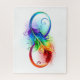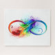 Símbolo de infinito dibujado artísticamente con una hermosa pluma arco iris sobre fondo blanco. Estilo tatuaje.