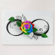 símbolo infinito con rosa arcoiris sobre fondo blanco.