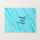 Puzzle simple blue whi watercolor lines add your monogram