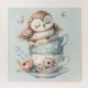 Puzzle Sleeping Owl in Stacked Floral Teacups