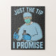 Un poco de humor hospitalario con este endoscópico, colonoscopio médica en escrúpulos con una endoscopia en mano.