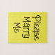 Esta es una manera divertida de proponer: Tomen estas piezas del rompecabezas y colóquenlas en una bolsa. Esconde la caja y los papeles que vienen con el rompecabezas. Presenta el bolso a la persona con la que quieres casarte y pide a esa persona que junte el rompecabezas. No dar información sobre el mensaje. ¡¡Observen a esa persona a la que adoran juntar el rompecabezas y luego (ojalá) chillar con deleite!! Divertido y romántico, este rompecabezas te permitirá proponer matrimonio de una manera ligera e interesante. Elija entre una amplia variedad de colores y estilos de letras. ¿No quieres casarte? Está bien. Cambiar el mensaje. ¡Diviértete! ¡Personalizable. Por favor, Sharon Lee Hudson.