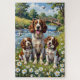 Una animada escena familiar de Springer Spaniel ambientada en una luminosa pradera junto al río. Con un perro adulto alegre y dos cachorros adorables, esta obra de arte captura movimiento, naturaleza y encanto juguetón, perfecta para amantes de los perros y decoración alegre.