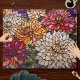 Bring beauty and tranquility to your leisure time with this stained glass–inspired dahlia design, crafted in luminous jewel tones that glow with depth and elegance. Perfect for cozy evenings, family time, or moments of quiet reflection, this intricate artwork turns puzzling into a peaceful retreat.
