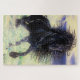 Puzzle Stallion negro frisón en olas oceánicas en dibujos