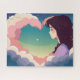 En este diseño una mujer de estilo anime que sueña con el amor sobre las nubes en forma de corazón. Este es un gran rompecabezas para regalar en ocasiones relacionadas con el amor.
