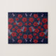 Rompecabezas del sueño - regalo con flores rojas de hibisco y colibríes púrpura.