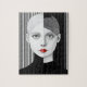 La IA generó arte de un rostro surrealista con dos lados y rayas negras y blancas y labios rojos