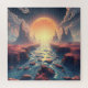 Un hermoso paisaje surrealista con una gran luna llena que se eleva sobre un río azul bonito. Ai arte que representa un hermoso paisaje de otro mundo con una calidad de ensueño.