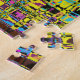 Este desafiante rompecabezas hace alarde de un tapiz abstracto en una variedad de tonos azules, rosados, morados, amarillos, verdes, negros y más!