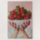 Una llamativa pintura hiperrealista de un tazón rebosante de fresas frescas y brillantes, sostenidas por manos delicadas con uñas rojas vibrantes. El suave fondo rosado y las mangas blancas con mangas rojas crean un contraste armonioso, realzando los suaves tonos rojos del fruto. Esta obra de arte captura la esencia de la indulgencia y la belleza en una composición visualmente impresionante.