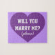 ¿Te casarás conmigo? Rompecabezas de rompecabezas del corazón púrpura. Sorprende a tu novia este El día de San Valentín (¡o cualquier día!) con una propuesta única en forma de rompecabezas. Personaliza con el nombre de tu novia o novio y el personalizar el estilo de letra, tamaño y color.