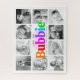 "Te quiero Bubbie". Ella ama cada minuto con sus nietos. Una imagen divertida, caprichosa y elegante de tipografía multicolor en negrita y tipografía manuscrita negra superponen un corazón suave y rosa claro y un fondo blanco. Añade 10 preciadas fotos de tu elección y personalizar los nombres y el mensaje, para el perfecto rompecabezas de rompecabezas de fotos, moderno, elegante y personalizado que siempre atesorará. Elige fotos en blanco y negro para un aspecto elegante. (CONSEJO DE FOTOGRAFÍA ADICIONAL: recortar sus fotos en formas similares y/o tener los temas en el medio ANTES de subir.) Disponible en cinco tamaños diferentes. Un gran regalo judío de honor para tu bubbie en el Día de la Madre, Hanukkah, su cumpleaños u otras festividades. Simplemente reemplace las 10 fotos de ejemplo con las propias, añada nombres, mensajes y/o fecha, y puede personalizar fácilmente este rompecabezas de rompecabezas del collage de fotos del personalizado keepsake. Por favor, envíame cualquier pregunta o petición.