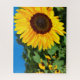 El rompecabezas inspirado por la naturaleza con una hermosa imagen escénica de un gran girasol cerrado con dramática luz solar sobre los pétalos de flores en un desafiante rompecabezas para los adultos.