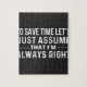 para ahorrar tiempo asumamos que siempre tengo razón, para ahorrar algún tiempo, asumamos, siempre tengo razón, chiste del humor, sarcasmo, futuro gerente de banco, gerente de banco retirado, gerentes de bancos, me encanta la economía, me gradué, me inspiro para el gerente de banco local soy oficial de policía local, im y, para ahorrar tiempo, asumir, nunca me equivoco, solo asumir, ahorrar tiempo, una vez