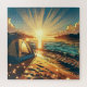 Playa de bonito acampando el rompecabezas vintage con un ilustracion ai de una carpa en una playa mientras el sol se levanta. Ai ilustracion hecho en un arte de historietas hiperrealista.