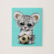 Puzzle Tigre Cub blanco con el balón de fútbol del fútbol