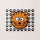 Aquí está un rompecabezas alegre para los niños de todas las edades. Un tigre sonriente del dibujo animado con los ojos googly le está esperando para poner el suyo junta. Un fondo de la impresión de la pata se ha añadido para el desafío adicional.