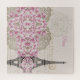 postal de la torre Eiffel vintage con reflejo de flores rosadas