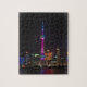 Desafíe su rompecabezas que hace habilidades con este tiro de la torre oriental de la perla de la Federación como enciende para arriba el horizonte de Shangai.