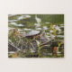 Para el amante del rompecabezas, a quien le encanta un desafío... Este debería ser un desafiante rompecabezas de una tortuga pintada sentada en un tronco de la mezquita en un estanque rodeado de hierbas verdes y hojas de lirio.