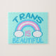 Hermoso rompecabezas transgénero con la bandera arco iris transexual de bonito con una cita tierna.