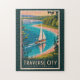 Diseño de viaje vectorial retro de la ciudad de travesía. Traverse City, Michigan, es un encantador destino junto al lago conocido como la Capital Mundial de las Cerezas, que ofrece a los visitantes viñedos, playas de arena del lago Michigan y paisajes pintorescos.