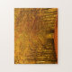 Rompecabezas de una trayectoria que camina a través de los árboles de haya de oro en un bosque en colores del otoño en temporada de otoño en los Países Bajos.