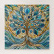 This design features an intricate, stained-glass–inspired Tree of Life surrounded by flowing, wave-like patterns. The tree sits at the center of a glowing circular mosaic, with leaves in rich shades of teal, turquoise, aqua, and deep blue. Each leaf is detailed with fine linework and textured shading, giving the design a luminous, handcrafted feel.