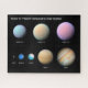 Ilustracion que representa a los tres planetas gigantes orbitando la estrella tipo Sol Kepler 51 en comparación con algunos de los planetas de nuestro sistema solar. Todos estos planetas son aproximadamente del tamaño de Júpiter, pero una fracción muy pequeña de su masa. Esto significa que los planetas tienen una densidad extraordinariamente baja, más parecida a la de la espuma de poliestireno que a la roca o el agua. Los planetas pueden haberse formado mucho más lejos de su estrella y haber emigrado hacia adentro. Ahora sus atmósferas infladas de hidrógeno/helio están sangrando en el espacio. Con el tiempo, se podrían dejar atrás planetas mucho más pequeños. Los colores de este ilustracion son imaginarios.