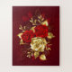 La composición de dos rosas rojas pintadas artistalmente y un rosa dorado, decorado con oro, hojas de joyas sobre fondo texturado.