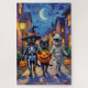 Los gatos negros adorables vestidos con juguetones disfraces de Halloween llevan baldes de calabaza mientras truco o truco bajo el cielo iluminado por la luna. Este diseño festivo resalta el elegante abrigo del gato, su misterioso encanto y su personalidad lúdica, capturando a la perfección la atmósfera espeluznante y divertida de la noche de Halloween. Una mágica celebración para los amantes del gato y los fans de Halloween por igual.