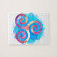 Triskel bretón moderno brillante en fondo azul de los triángulos.