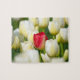 Puzzle Tulipán rojo en un campo de los tulipanes blancos