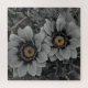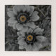 A pair of delicate daisies take centre stage in this striking selective‑colour photograph. The petals and surrounding foliage are rendered in smooth grayscale, creating a calm, monochrome backdrop. At the heart of each bloom, vivid yellow‑orange centres burst with warmth and detail, forming a dramatic contrast that immediately draws the eye. Fine water droplets rest on the petals and leaves, adding texture and a sense of freshness. The combination of soft tones and vibrant colour accents gives the artwork a modern, elegant feel that suits home décor, nature lovers, and contemporary art collections.
