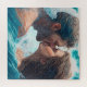 Una hermosa obra de arte de un par de personas acurrucando juntos en el agua. Un beso en las olas.