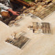 Un indio americano busca el riverbank para las muestras de su mina. Detrás de él, su caballo pinto-revestido de confianza parece haber manchado algo en el banco lejano. El perseguidor no es particularmente armado bien para cazar el juego o a enemigos. Quizás, él está siguiendo algo - o algún otro, por otra razón. El símbolo de Kokopelli que adorna la tachuela de su caballo puede ser una pista.
