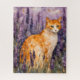 Un hermoso gato jengibre en un campo de lavanda... ...un arte generado