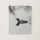 Puzzle Un lobo común nade en un lago del norte en inviern
