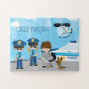 ¡Dale a tu pequeño policía o policía su propio rompecabezas personalizado con temática de policía! El rompecabezas tiene dos oficiales de policía, uno un niño y otro un chica. Ambos llevan gafas de sol, gorras y tienen insignias, y uno tiene esposas. Hay un prisionero junto a los oficiales, así como un perro policía y un auto de policía. El helicóptero de la policía patrulla la escena desde el aire. Personalizar el rompecabezas con el nombre de su hijo o hija, precedido por el texto Jefe o el texto de su elección.