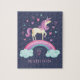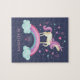 Un lindo y mágico unicornio con corazones y un arco iris decora este rompecabezas. Personalizarla con su nombre. Un regalo divertido para un chica. Diseñado para ti por Blackberry Boulevard.