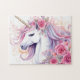 Unicornio color agua dulce con flores rosas, decoración floral.