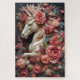 Rompecabezas con un fabuloso y romántico ilustracion de un unicornio con rosas. Este rompecabezas sería un regalo maravilloso para cualquier amante del rompecabezas a quien le gusten los unicornios o el bordado.