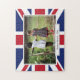 Este es un elegante rompecabezas patriótico de la BANDERA BRITÁNICA, que muestra una FOTO de PERSONALIZABLE en el centro con un delgado borde interior y un borde exterior más grueso. Puedes reemplazar la foto con una imagen similar a tu elección, y agregar tu propio pie de foto. La bandera JACK de la UNIÓN del REINO UNIDO está en el fondo en un patrón de baldosas. Esto sería un gran regalo de honor para los cumpleaños y Navidades, y para cualquier ocasión especial a lo largo del año.
