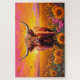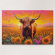 Puzzle Vaca Highland en campo de girasoles al amanecer