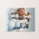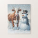 Puzzle Vaca y muñeco de nieve en el campo invernal