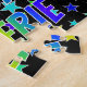 Este vibrante y divertido diseño de rompecabezas con temática de cumpleaños presenta el mensaje "FELIZ CUMPLEAÑOS, VALERIE" con los personajes con un colorido patrón de gradiente inspirado en el espectro del arcoiris, junto con un patrón de fondo de las formas de estrellas animadas. Un puzzle colorido como este podría ser usado para enviar un mensaje de bienvenida de cumpleaños a alguien llamado Valerie. [~Z0000468]